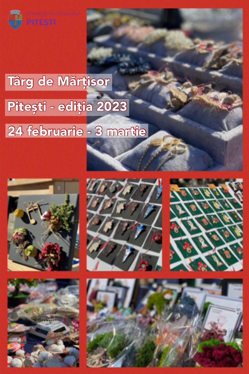 Târgul de Mărțisor – Pitești, ediția 2023, se va desfășura în Piața Vasile Milea, în perioada 24 februarie – 3 martie, producătorii și comercianții urmând să expună și să ofere spre vânzare suvenirurile specifice zilei de 1 Martie, pe mesele puse la dispoziție de municipalitate.