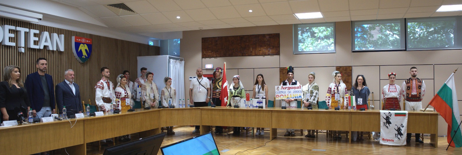 Demonstrație artistică și primirea delegaţiilor la Primăria Municipiului Curtea de Argeș.