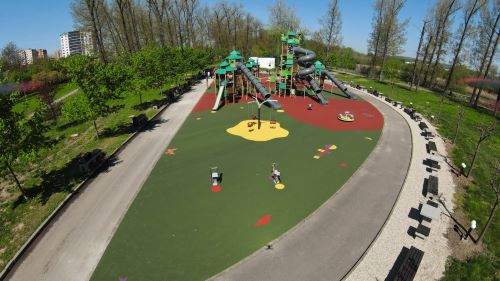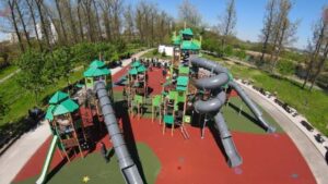 Lucrările, desfășurate pe o suprafață de aproximativ 1.142 mp, în interiorul parcului, au constat în dotarea cu echipamente noi pentru locul de joacă, amplasate în funcție de vârsta pentru care au fost prevăzute.