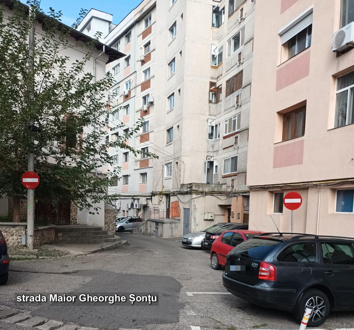 Aleea carosabilă din spatele blocului D4, pe strada Maior Gheorghe Șonțu, cu direcție de circulație dinspre parcarea supraterană către blocul D6, conform avizului emis de Comisia pentru sistematizarea circulației, în data de 07.08.2024.