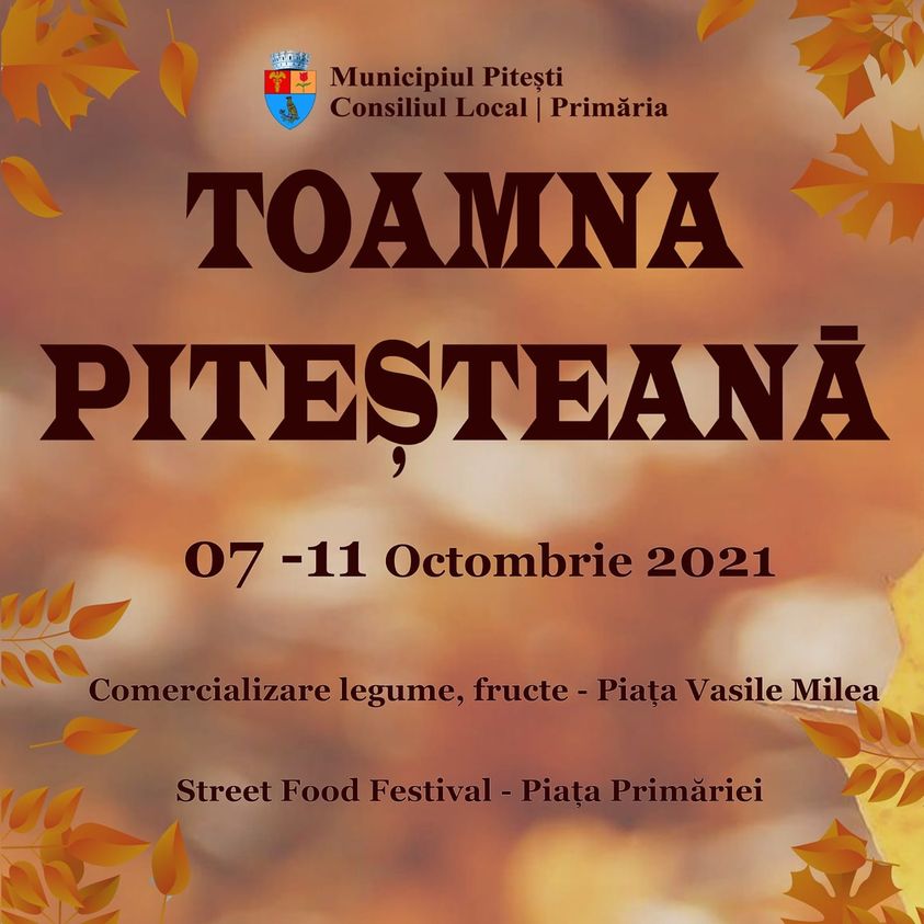 Având în vedere situația epidemiologică actuală, consiliul consultativ format din reprezentanții factorilor decizionali, responsabili pentru aplicarea măsurilor de siguranţă sanitară cerute de legislația în vigoare, a hotărât ca festivalul „Toamna Piteșteană” din acest an să se desfășoare în cele două piețe centrale din Pitești: Piața Milea și Piața Primăriei.