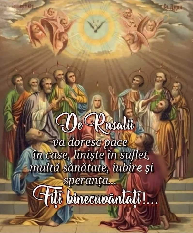 De Rusalii,Sfântul Duh să coboare asupra noastră ,să ne umple inimile de iubire și bucurie ,să aducă pace și înțelegere în fiecare familie !