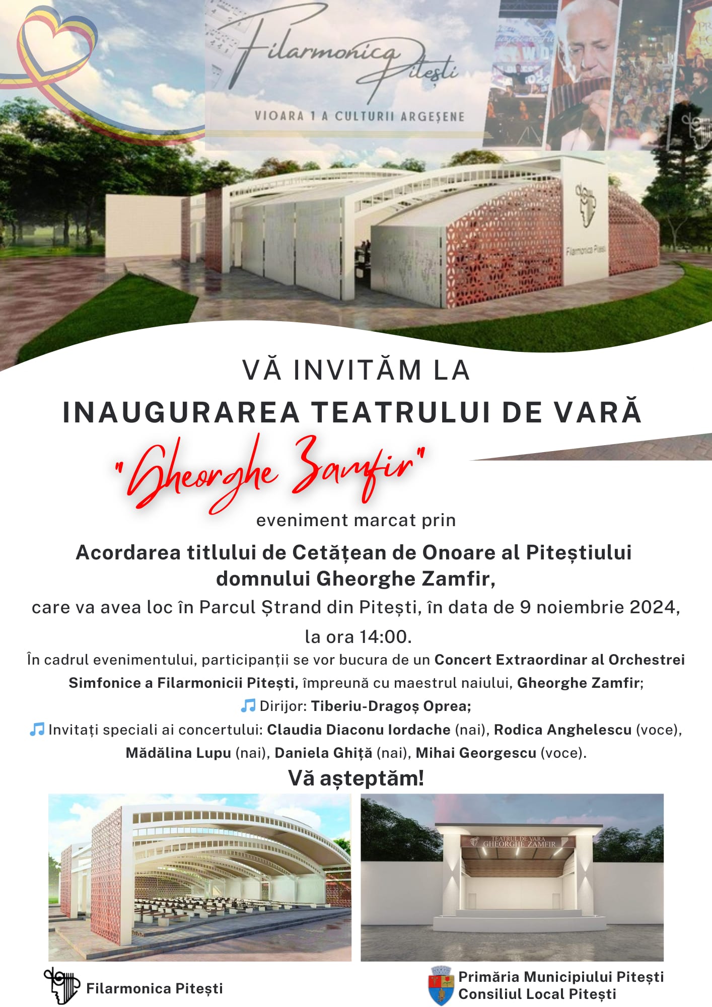 Evenimentul va include un concert extraordinar susținut de Orchestra Simfonică a Filarmonicii Pitești, împreună cu maestrul Gheorghe Zamfir, sub bagheta dirijorului Tiberiu-Dragoș Oprea, alături de invitații speciali: Claudia Iordache (nai), Rodica Anghelescu (voce), Mădălina Lupu (nai), Daniela Ghiță (nai), Mihai Georgescu (voce).