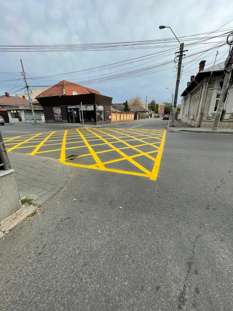 Marcaj hașurat, în intersecția străzii Exercițiu cu strada Traian, din municipiul Pitești!