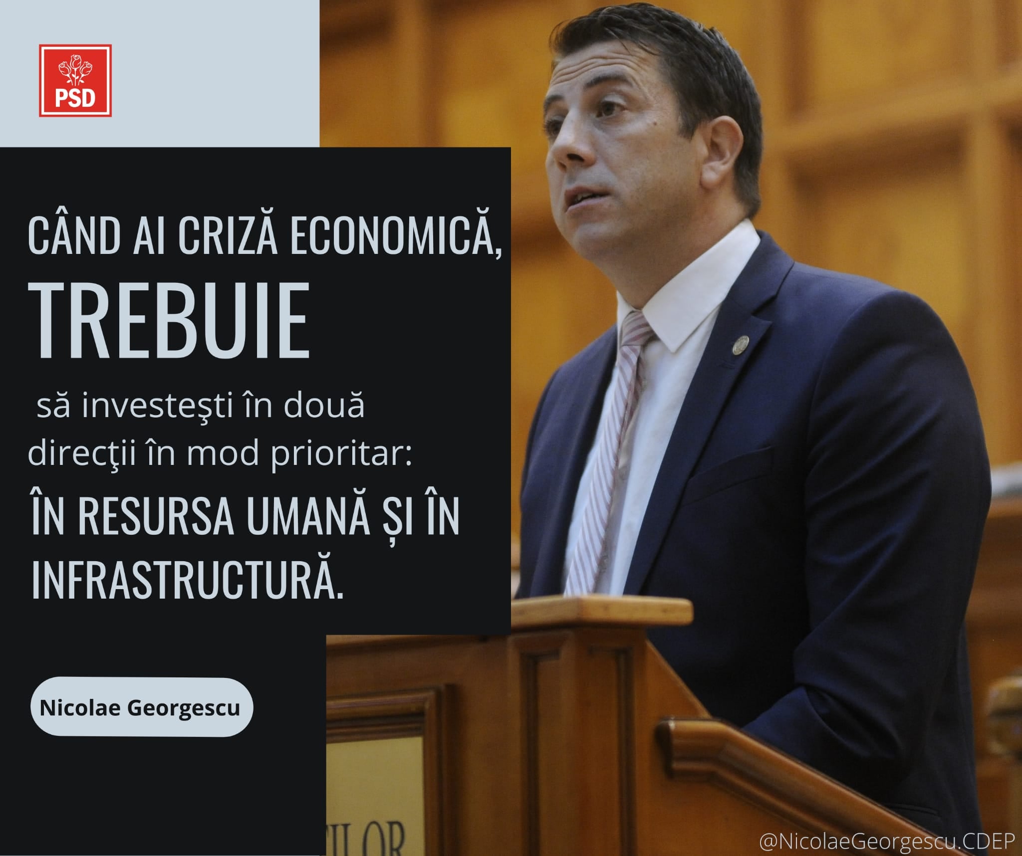 SD ArgeșCând ai criză economică, trebuie să investești în două direcții, în mod prioritar: în RESURSA UMANĂ și în INFRASTRUCTURĂ.