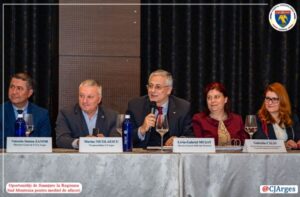 ,,Ieri am avut o sesiune asemănătoare, însă cu autoritățile locale. Și acolo interesul a fost unul mare. Ne dorim bani cât mai mulți în județul Argeș, fie că sunt atrași de administrația locală, fie că vorbim de sectorul privat, pentru că acest lucru va aduce la reducerea decalajelor și la dezvoltarea județului nostru. Ne dorim ca, la sfârșitul exercițiului bugetar, să putem spune că am atras cât mai multe fonduri în Argeș și că am reușit să dezvoltăm județul” – Marius Nicolaescu, vicepreședinte Consiliul Județean Argeș.