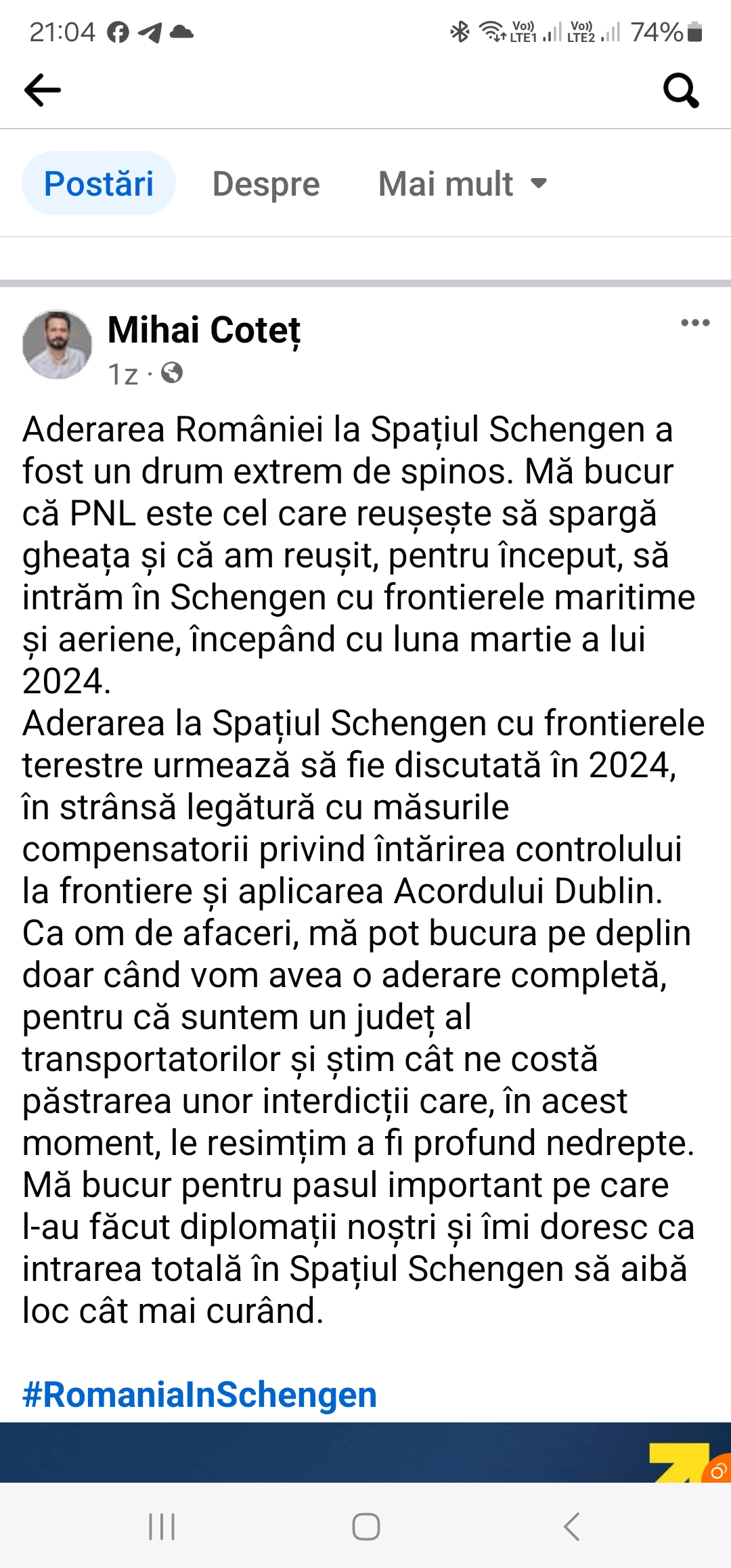 O face Mihai Coteț, șef la PNL Pitești, consilier local și vânzător de uleiuri auto, care crede că PNL a rezolvat problema și a reușit să spargă gheața, băgând România în Schengen!