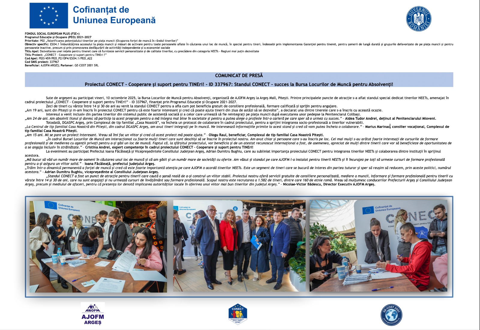 AdministrativInteres localSocial Proiectul CONECT – Cooperare și suport pentru TINEri! – ID 337967: Standul CONECT – succes la Bursa Locurilor de Muncă pentru Absolvenți! 14/10/2025 0 3 Share pe Facebook Tweet pe Twitter