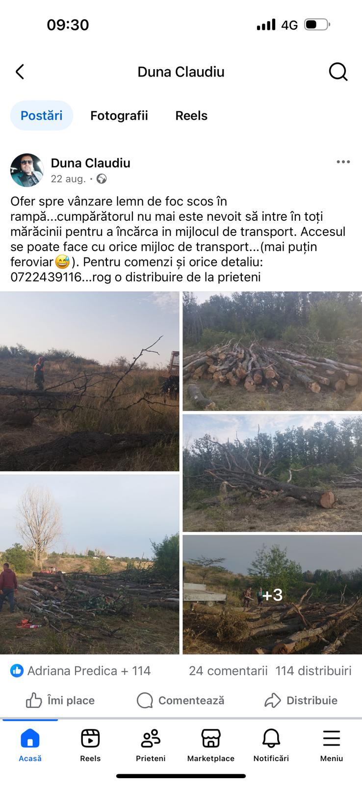 În acest context tensionat, apare exemplul unui pădurar argeșean, Dună Claudiu, care își face publicitate deschisă pe rețelele sociale. Cu un firesc dezarmant, acesta anunță: „Ofer spre vânzare lemn de foc scos în rampă… acces cu orice mijloc de transport (mai puțin feroviar)”.